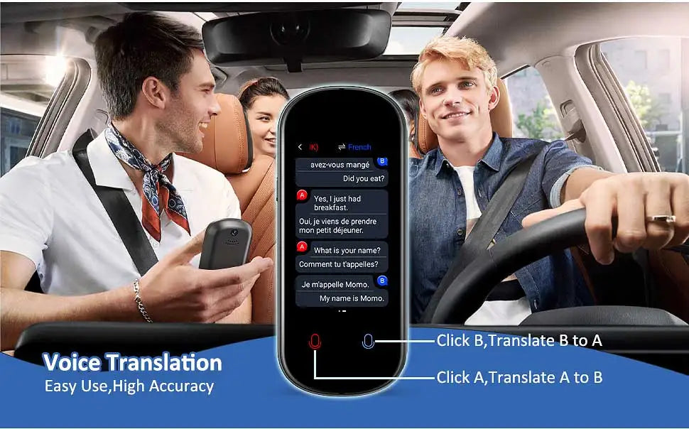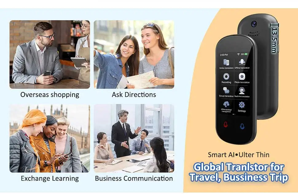 The voice translator device two way has added a new feature - simultaneous interpretation, which quickly switches to another conversation mode. After selecting the source and target languages, lightly press the corresponding microphone button, and the instant two way translator will automatically recognize the conversation and translate it into your language, making communication easy. The language translation devices can be connected to headphones or speakers for a more unique translation experience.Provide a More Relaxed Way of Communication for Eachother